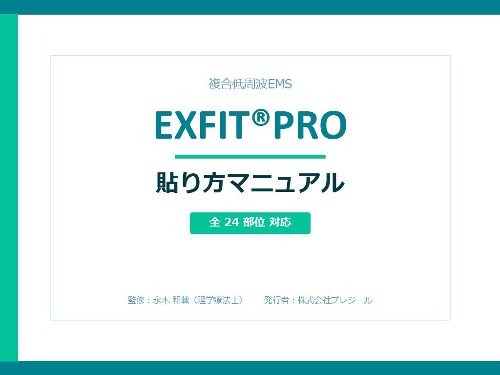 ご紹介した例以外にも、EXFIT-PROには様々な部位に対応できます。より詳しく、専門的な視点から各部位へのアプローチ方法を知りたい方は、ぜひ「貼り方マニュアル」をご覧ください。